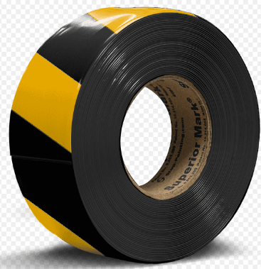 Ergomat DuraStripe Supreme V, yellow and black, 2"x100, heavy-duty, industrial-grade floor marking tape designed for durability, easy installation, and safe traffic guidance in high-imp…